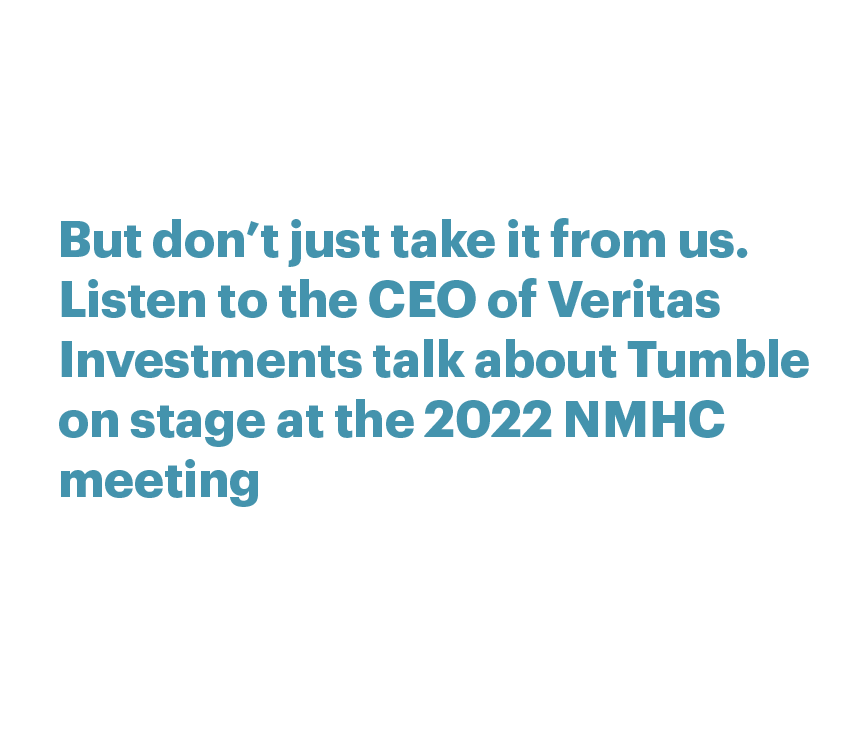All machines utilize Tumble’s proprietary connected system with cashless payment. With signing of a 5 year or more term, Tumble will include it's upcoming resident insights platform included in this package. The optional Smart Center may be purchased for $600.
